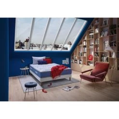 Matelas au soutien équilibré avec des ressorts ensachés : indépendance de couchage.. Tissu micro perforé sur les côtés du matelas : aération optimale..